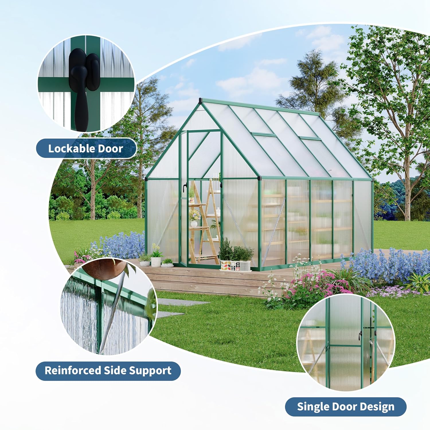 - Versatile for All Seasons & Quick Setup Structure - These backyard friendly structures are perfect for cultivating a variety of vegetables, plants, and herbs, with ample space for gardening tasks. Designed for simplicity with a quick install system and slide in panels, our greenhouse, which has been perfected through over 500 tests, boosts setup speed by 40% and enhances stability by 35%. This polycarbonate greenhouse for outdoors features a simplified assembly process with innovative quick conn