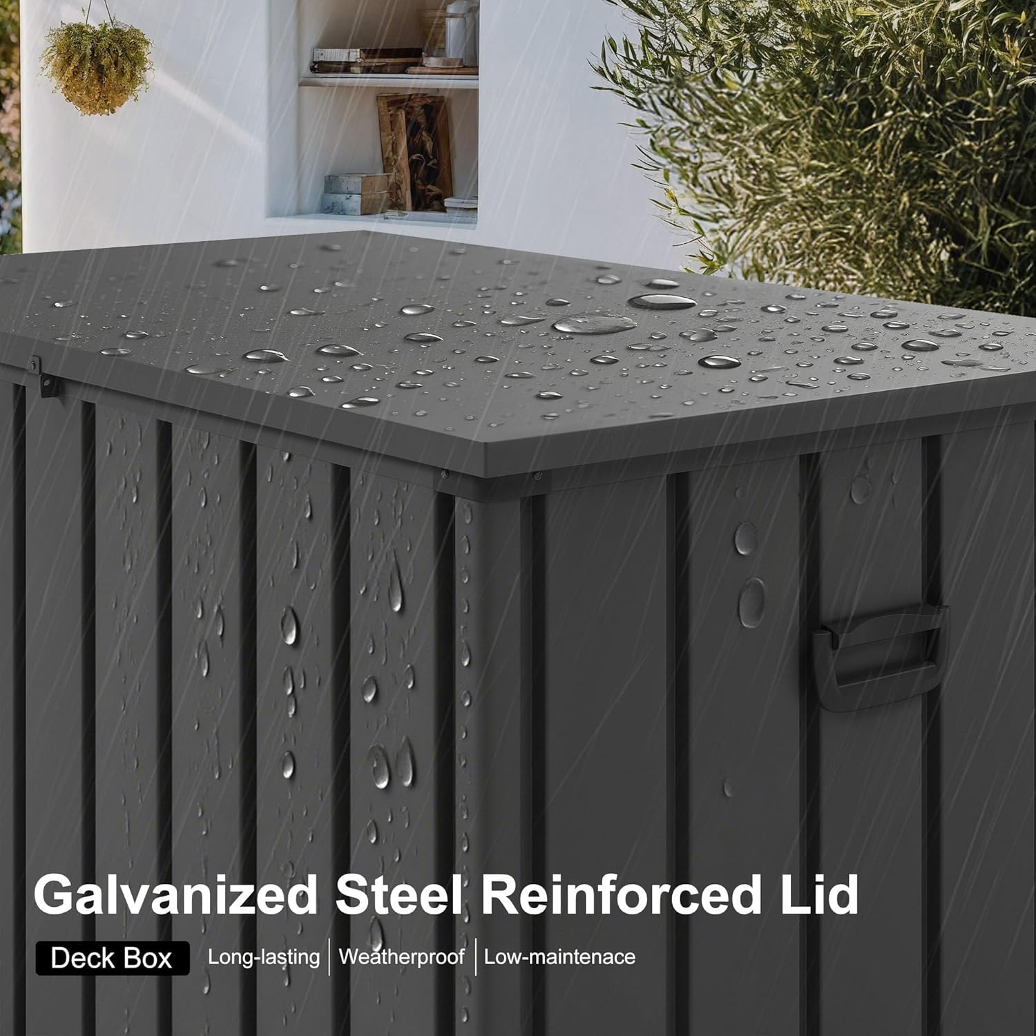 - Galvanized Steel Reinforced Lid: This sturdy storage box features a galvanized steel-reinforced lid that is fade-resistant, weatherproof, and rustproof for at least 2 years.