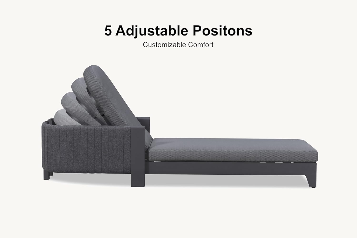 - Lightweight Powder-Coated Aluminum Frame: Featuring a robust aluminum frame with a smooth powder-coated finish, this chaise lounge resists rust and UV rays while ensuring easy upkeep.