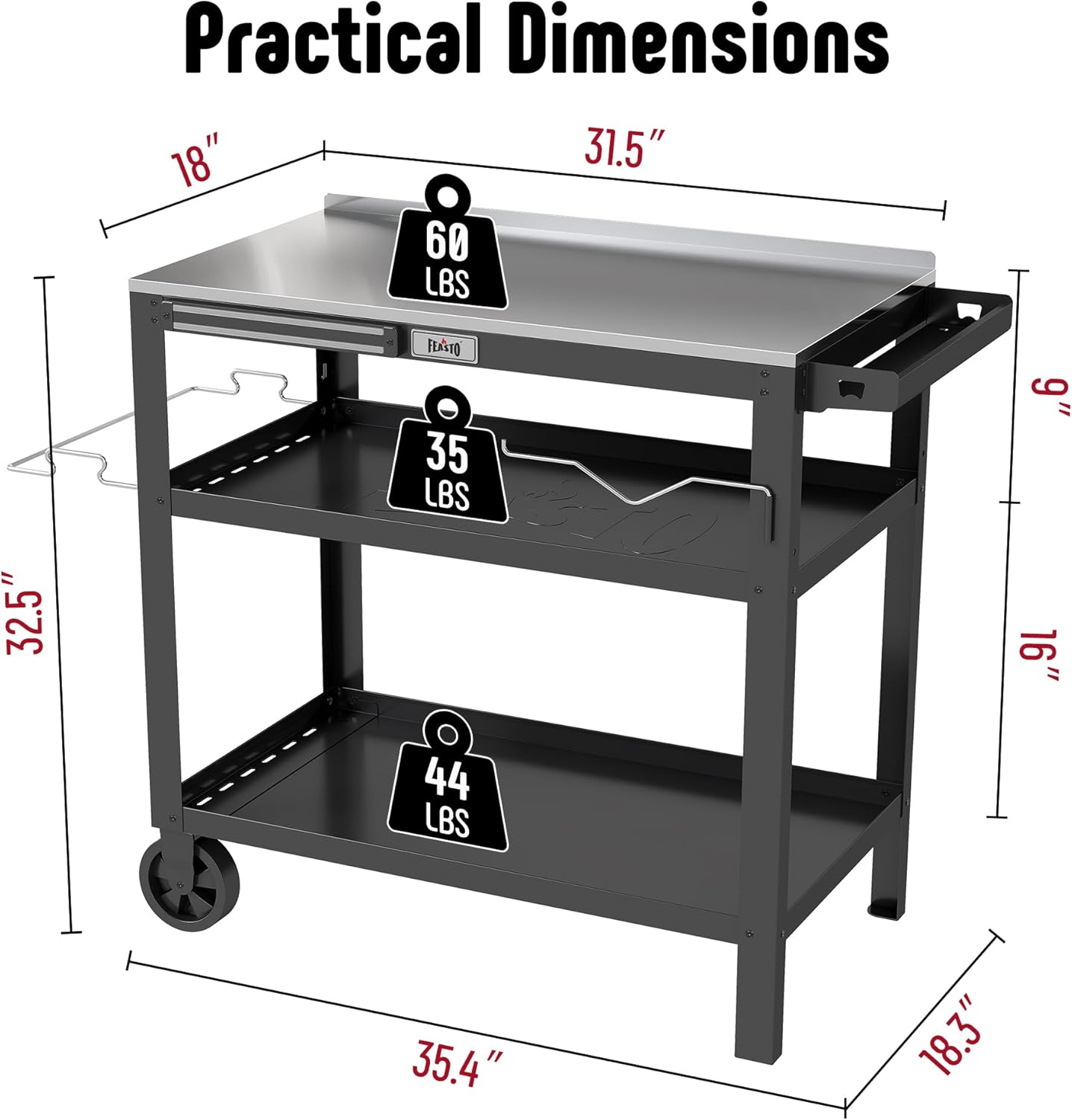 - Perfect as a serving bar cart in the kitchen,a dining table, an outdoor BBQ table or griddle stand, food prep station, or a plant potting bench, even a storage table in the laundry room, wherever your need it.