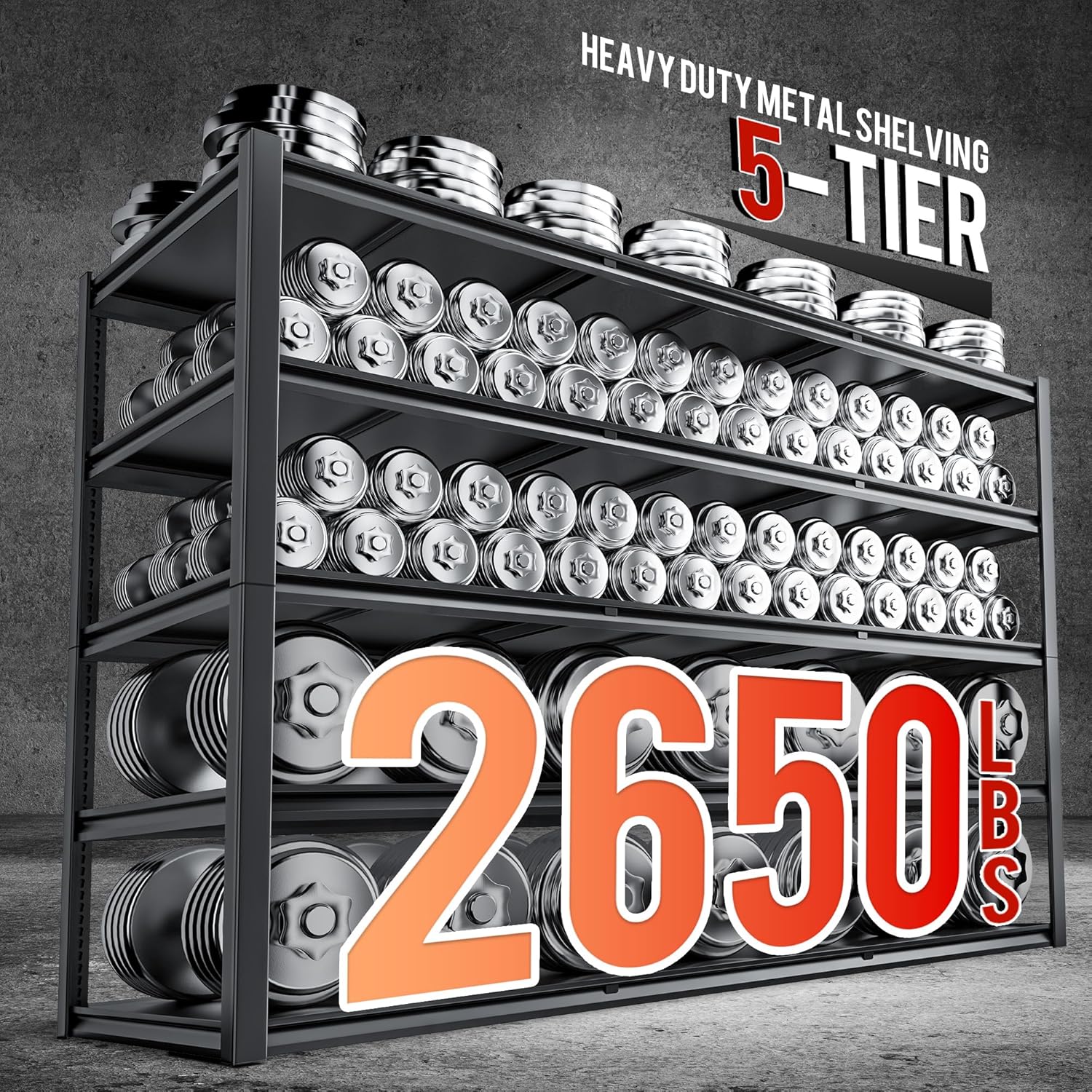 59.8" W x 72.2" H x 24.2" D Metal Storage Shelves, 2650LBS Garage Shelving Unit with Adjustable Shelf, 5 Tier Storage Rack for Garage, Pantry, Warehouse, Basement, Black, 2 Pack
