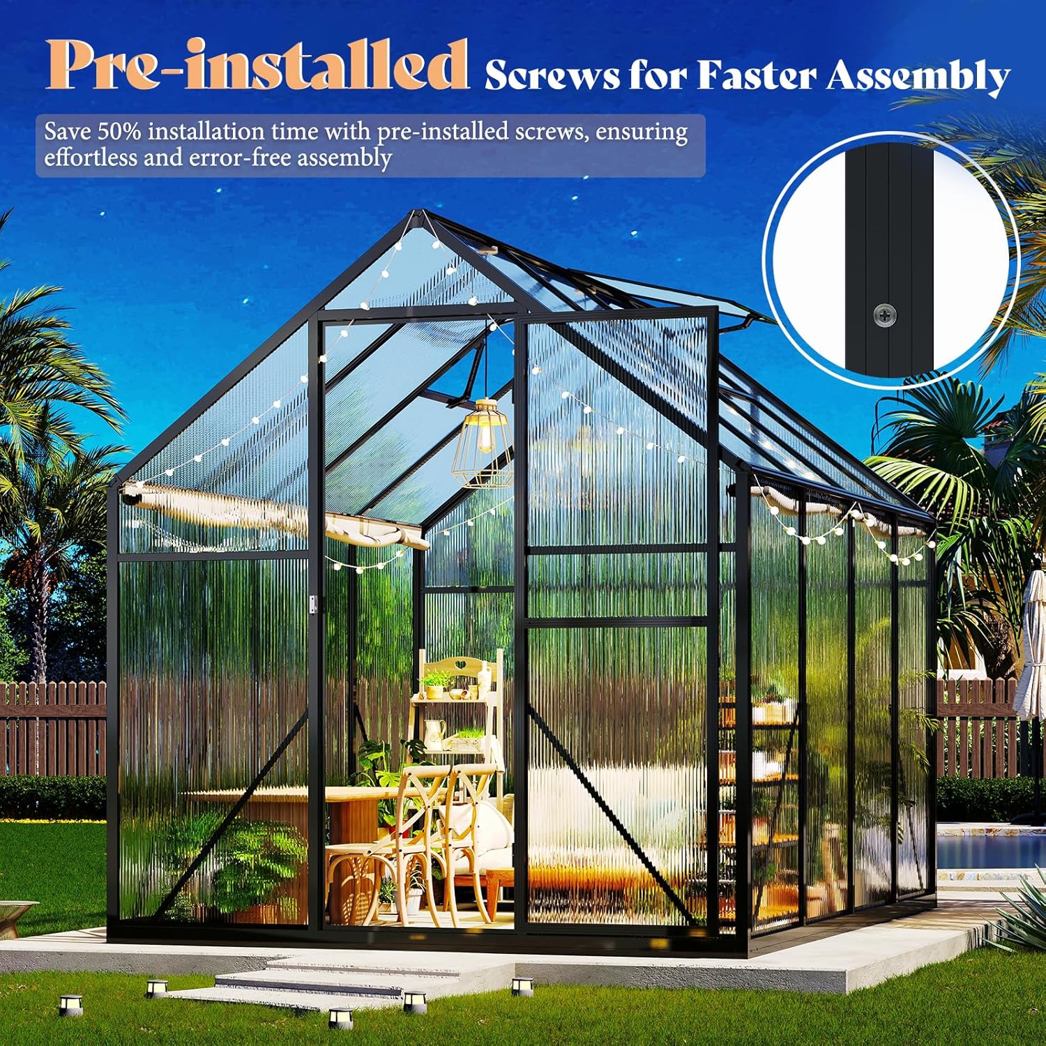 Amerlife 6x10x6.3 FT Ft Polycarbonate Greenhouse for Outdoors, Walk-in Design with Aluminum Frame, 2 Windows and Swing Door, Heavy-Duty Greenhouse Construction for Garden, Black